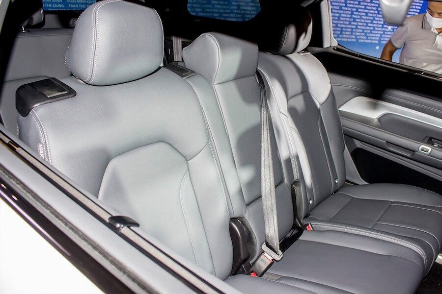 Hàng ghế trước và sau đều có khả năng chỉnh điện. Xe có tổng cộng 6 chỗ ngồi, họa tiết và cách phối màu ghế ngồi kết hợp với tựa đầu có logo V dập nổi dễ liên tưởng tới xe sang.